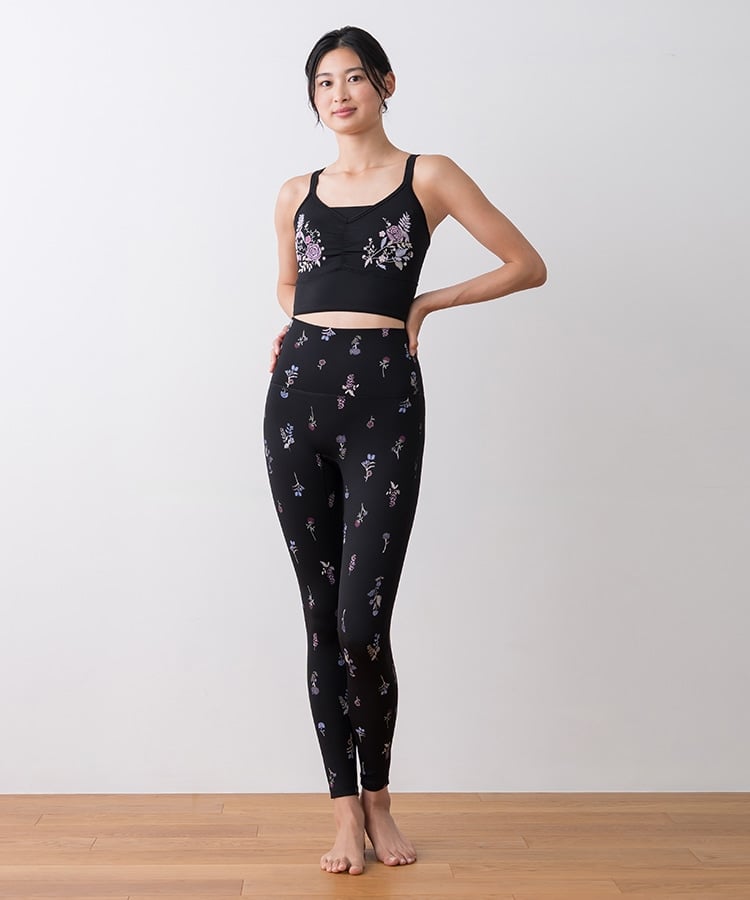 レッグラインにフィットするパターン設計で、しっかりフィットするのに締め付け感がないストレスフリーな着用感のレギンス。