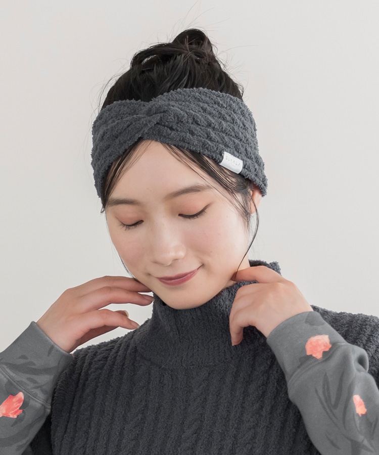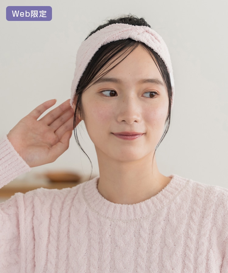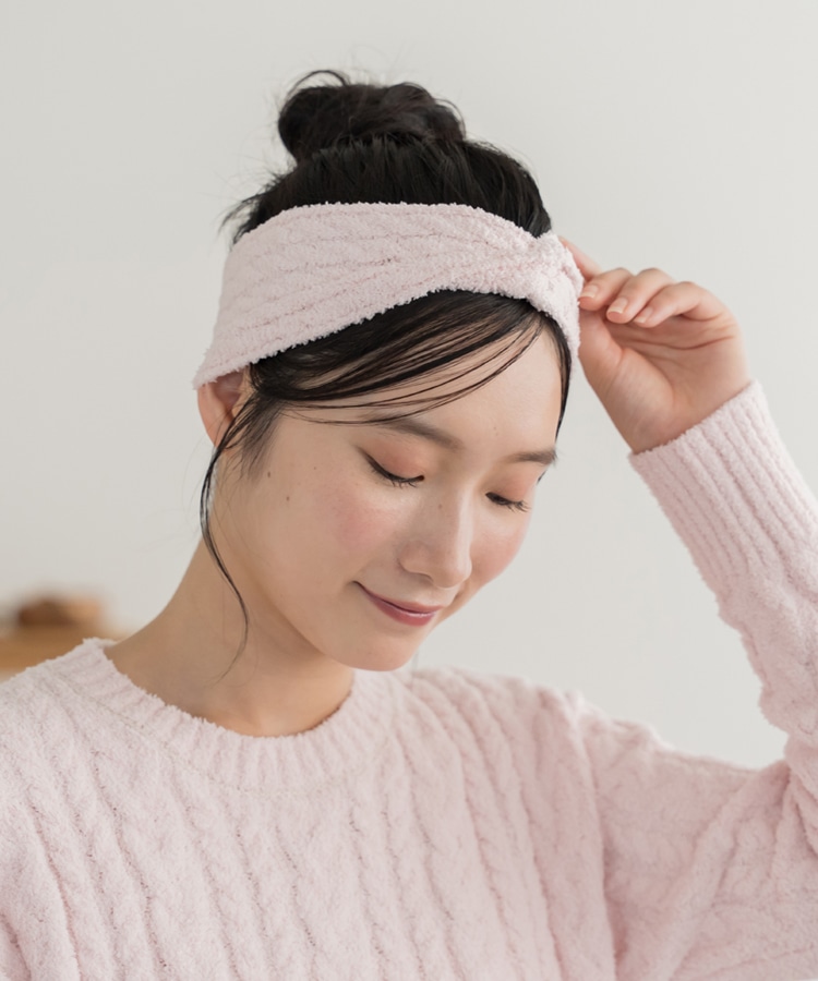 柔らかな素材と優しいフィット感が魅力のケーブル柄ヘアバンド。お部屋での読書やスキンケアタイムに最適。