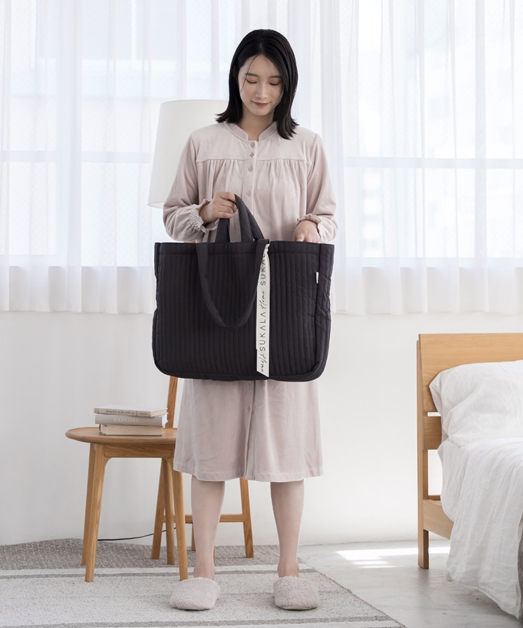 ふんわりとしたキルティング素材で、軽やかなのにしっかり収納。