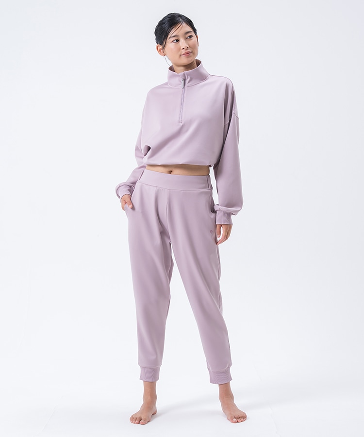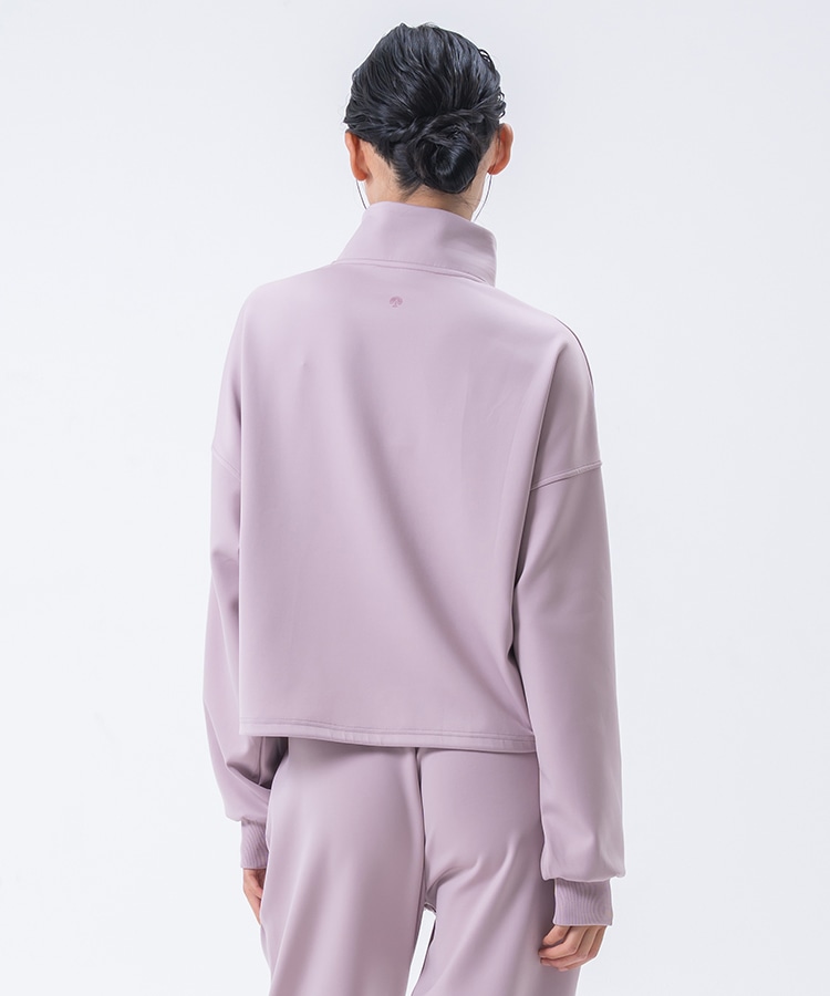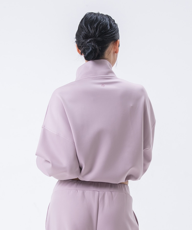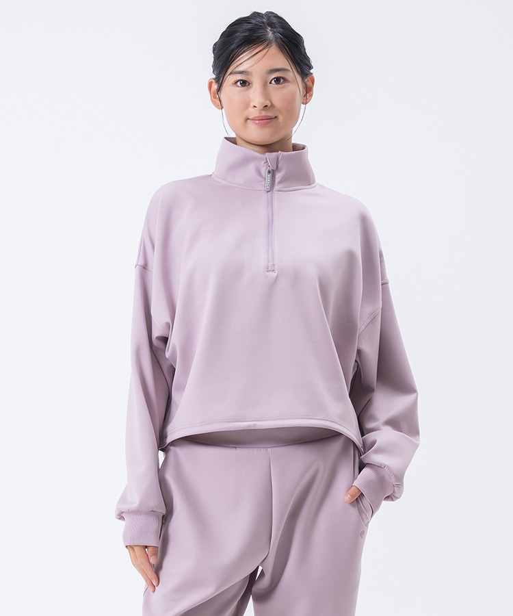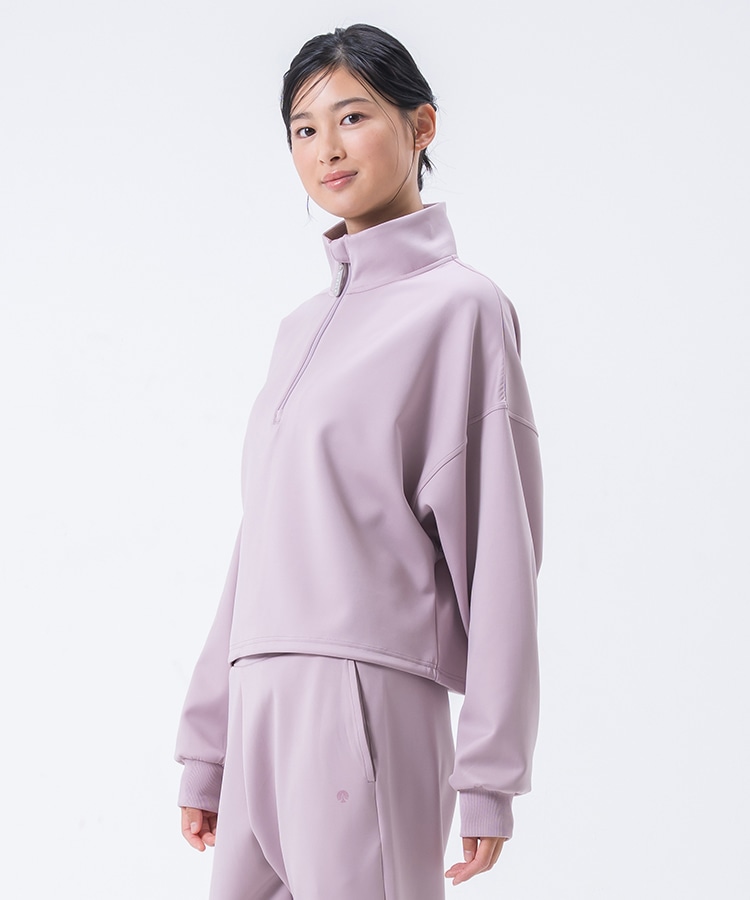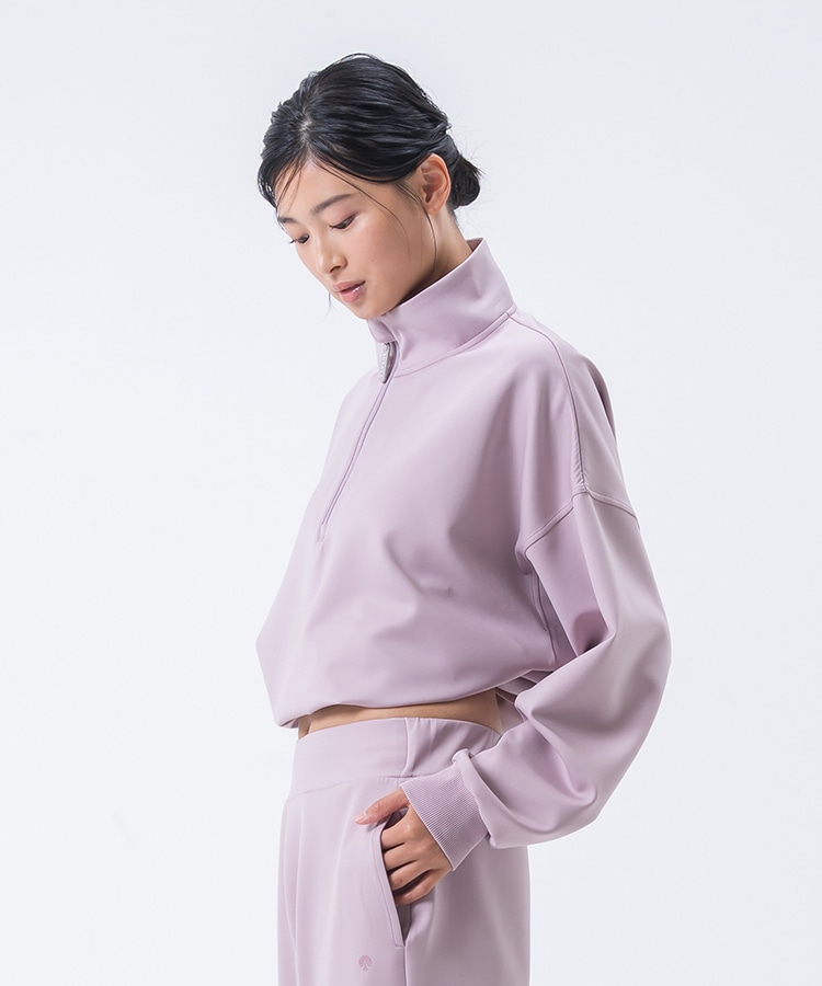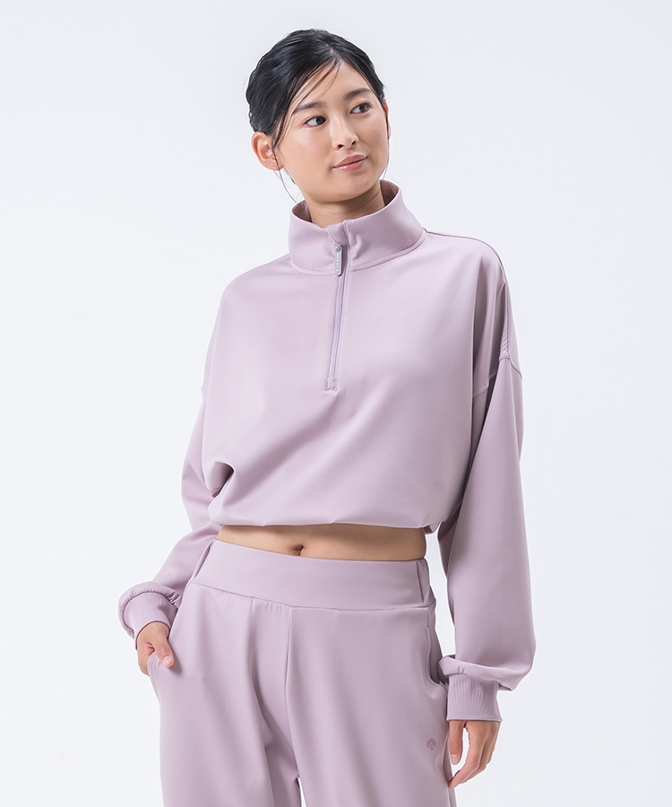 トレンドのクロップド丈のハーフジッププルオーバー。