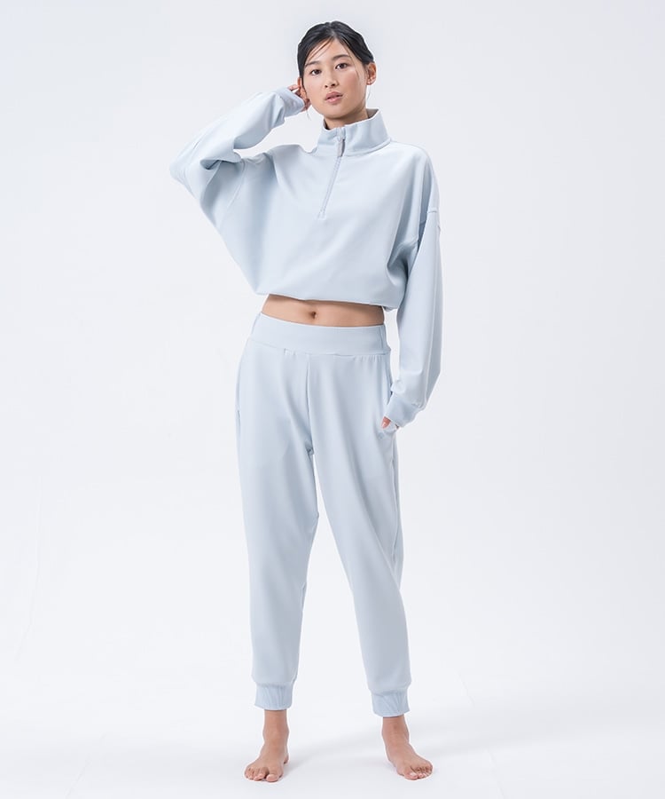カラーはアイボリー、ダスティーピンク、スモークブルー、ブラックの4色展開で、同時期に発売するエアコンフォートハーフジッププルオーバーとのコーディネートがおすすめです。