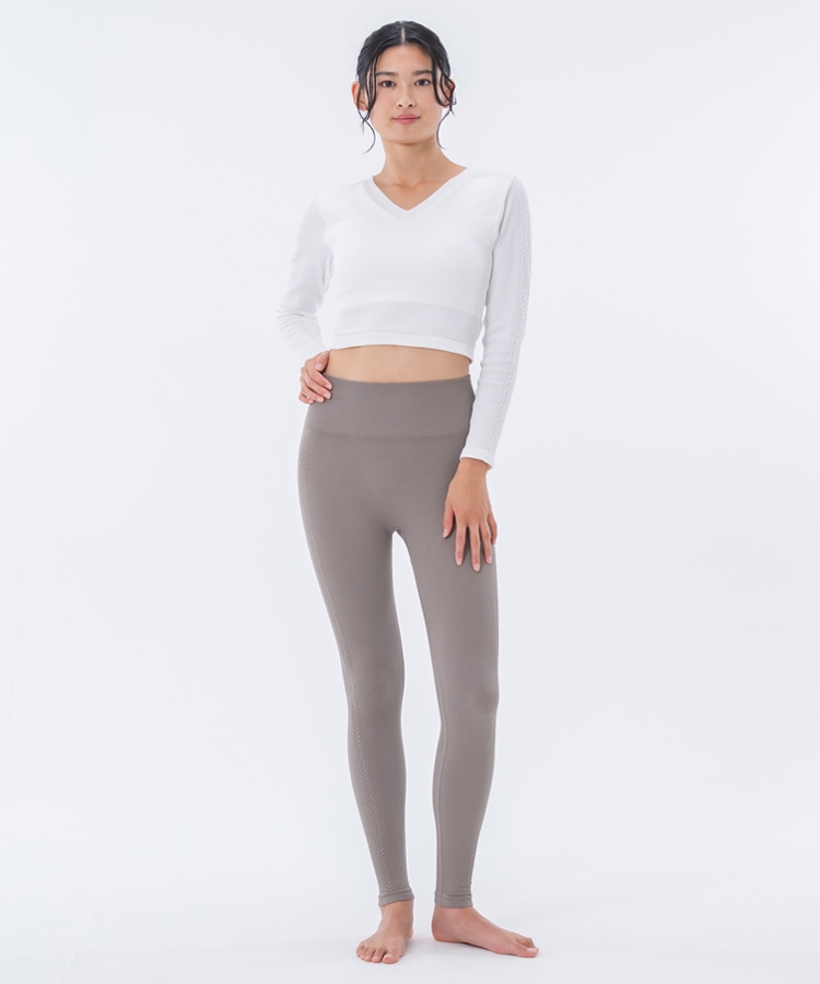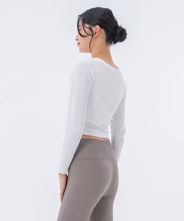 凹凸感のあるジャガード素材でリーフ柄を表現した、すっきりとしたスリムシルエットのロングスリーブトップス。