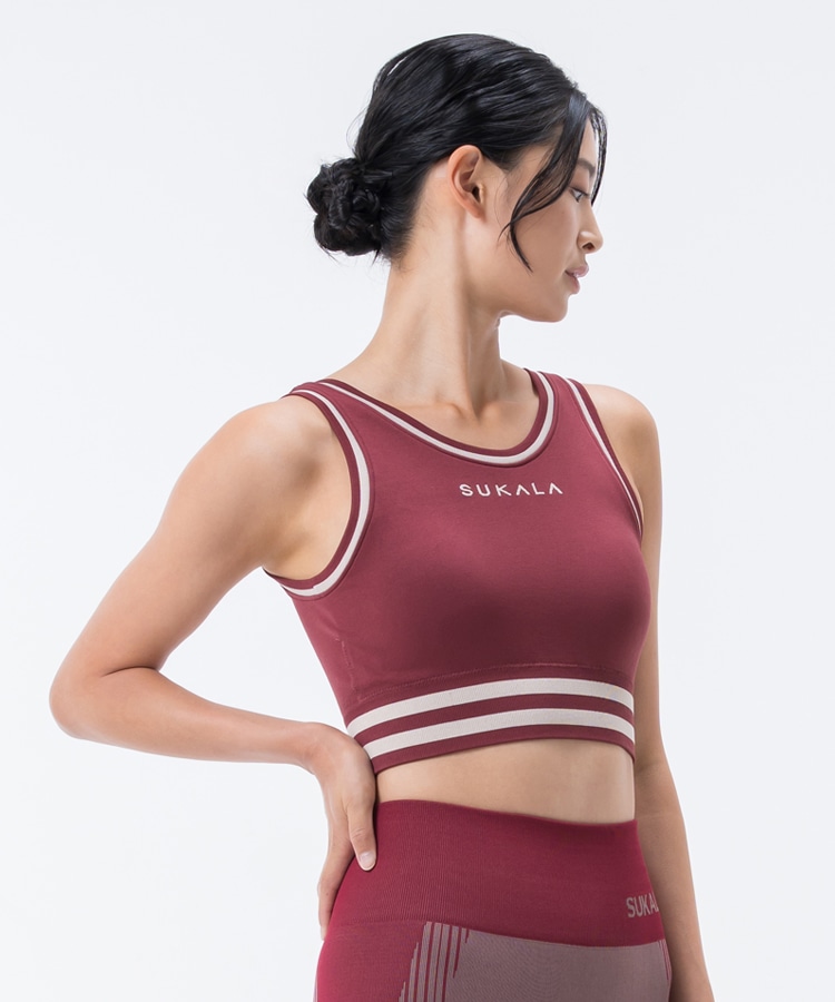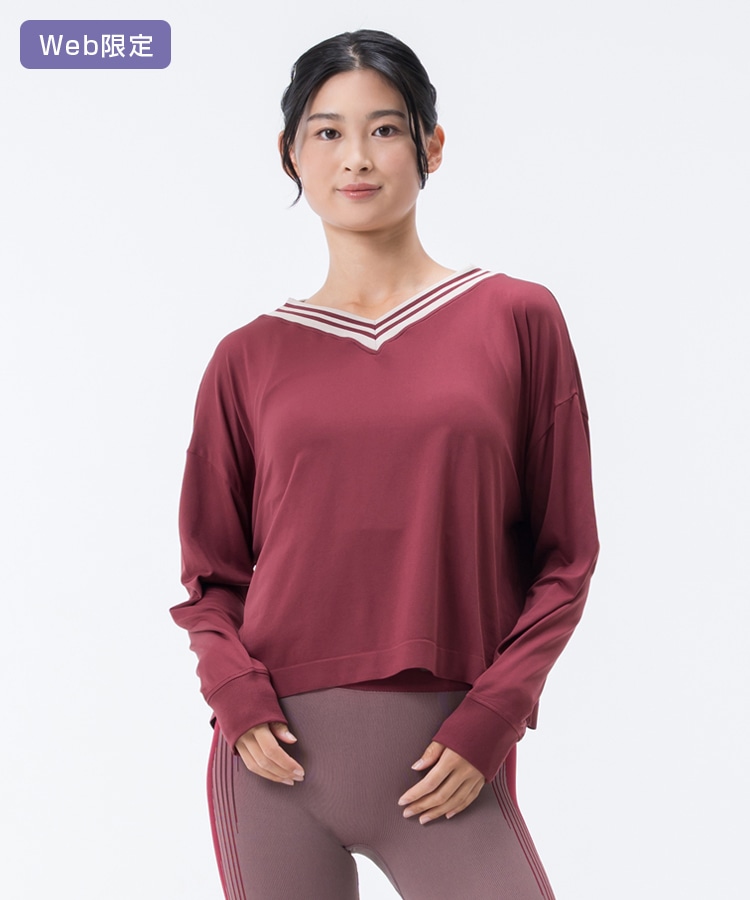 ブラトップとVネックプルオーバーのセットアイテム。カレッジ風のデザインでコーディネートのアクセントにぴったり。