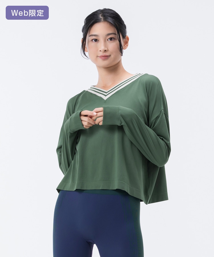 ブラトップとVネックプルオーバーのセットアイテム。カレッジ風のデザインでコーディネートのアクセントにぴったり。
