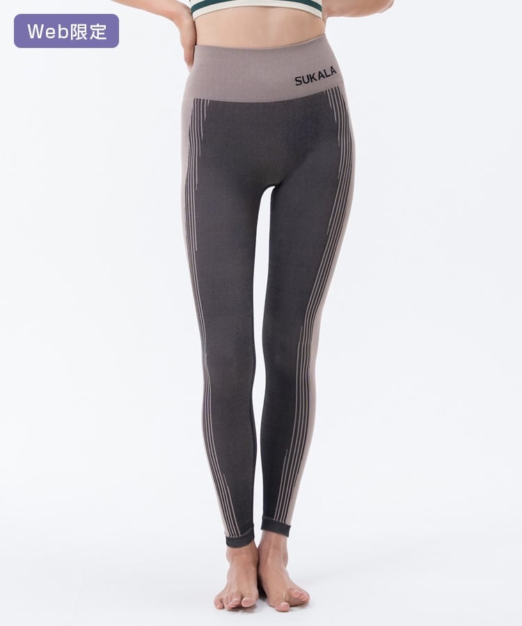 脇のシャドーラインが身体のラインを立体的に見せてくれるスリム見えレギンス。