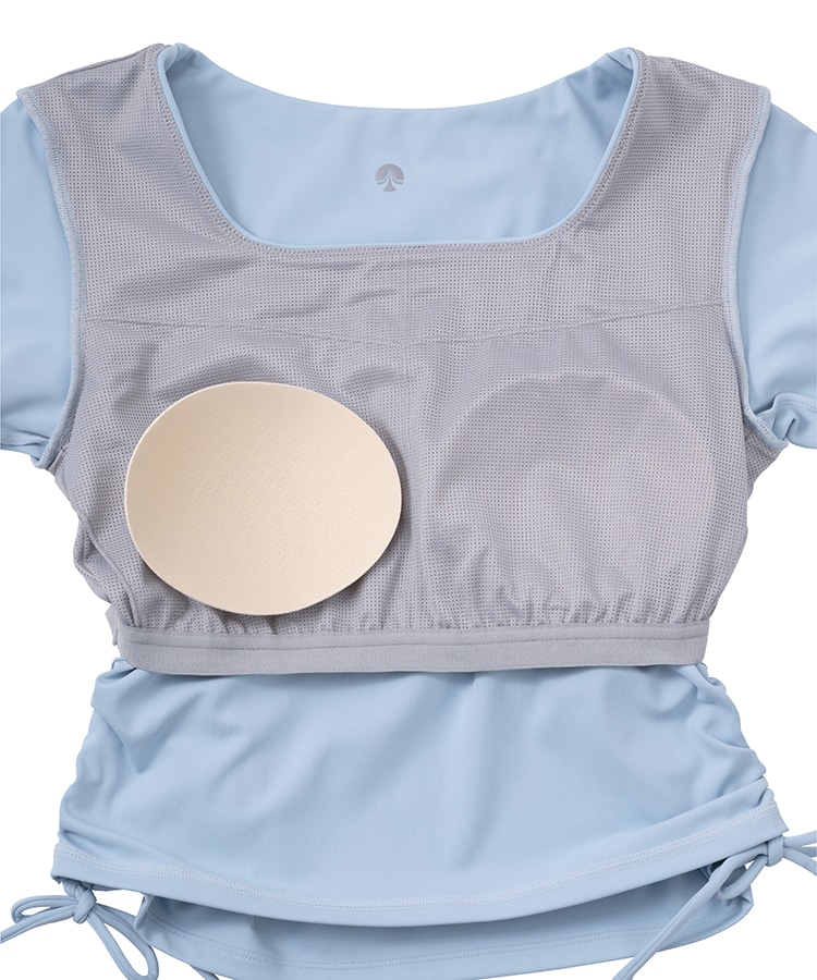 大きく開いたスクエアネックは着替えやすいのも〇。デコルテをすっきりときれいに演出します。