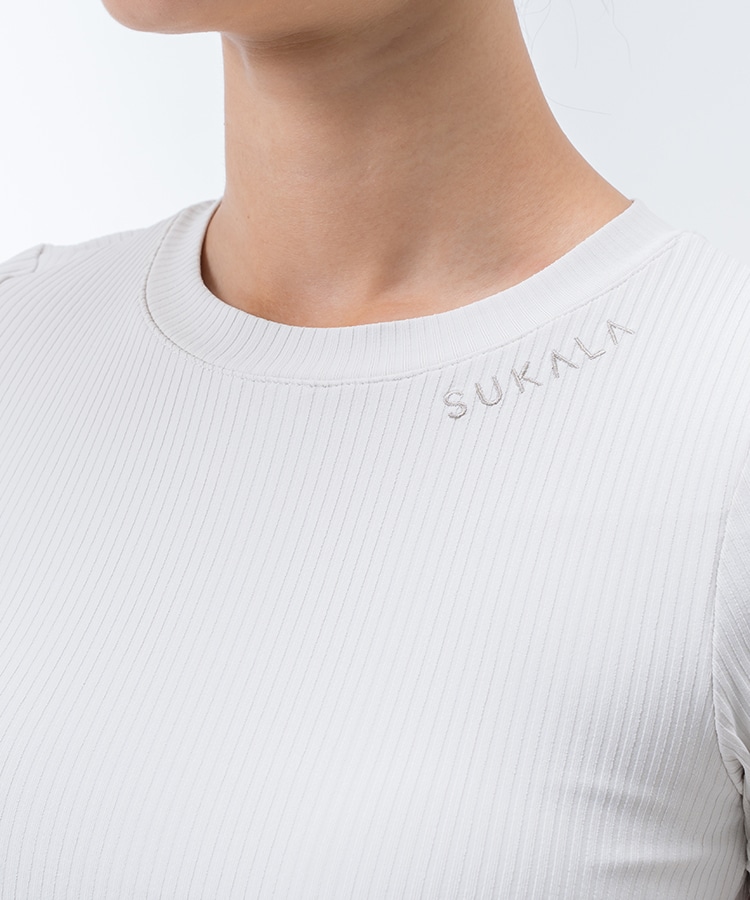 針抜きリブの凹凸感が可愛い、コンパクトシルエットのTシャツ。