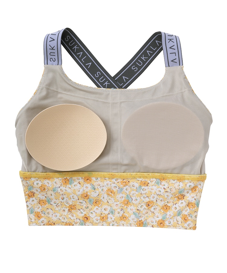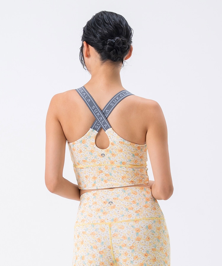 華やかで前向きな気分になれる。SUKALAロゴストラップをあしらったストレスフリーに動けるクロスタイプのブラトップ