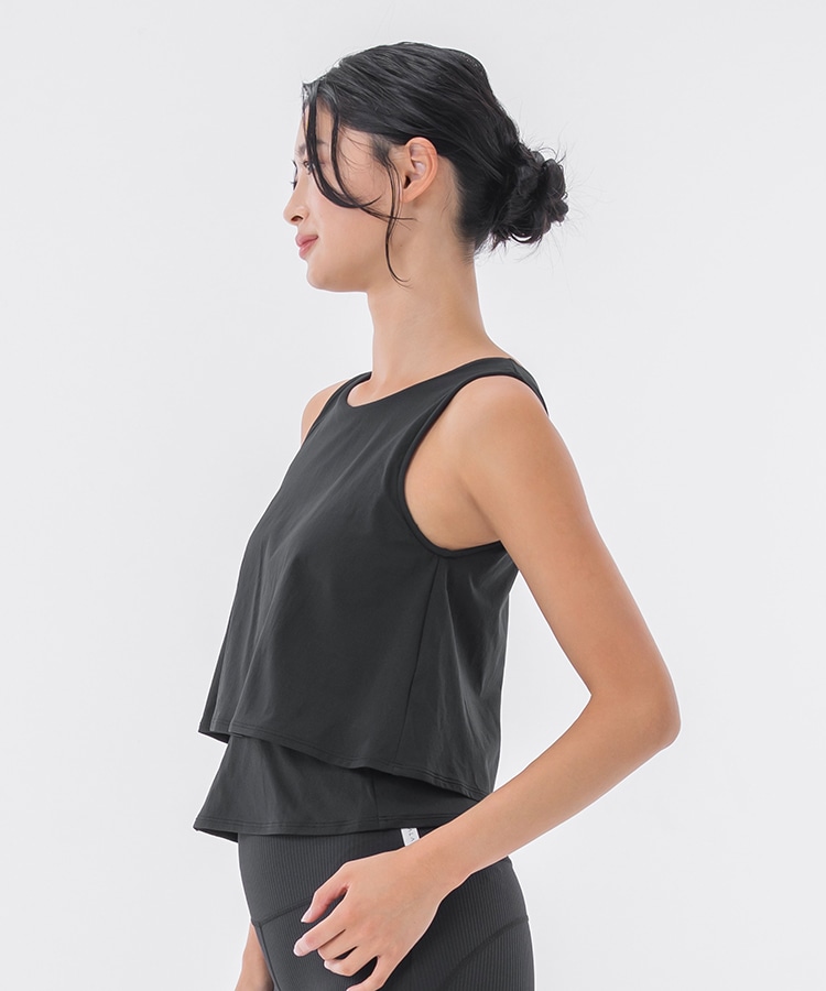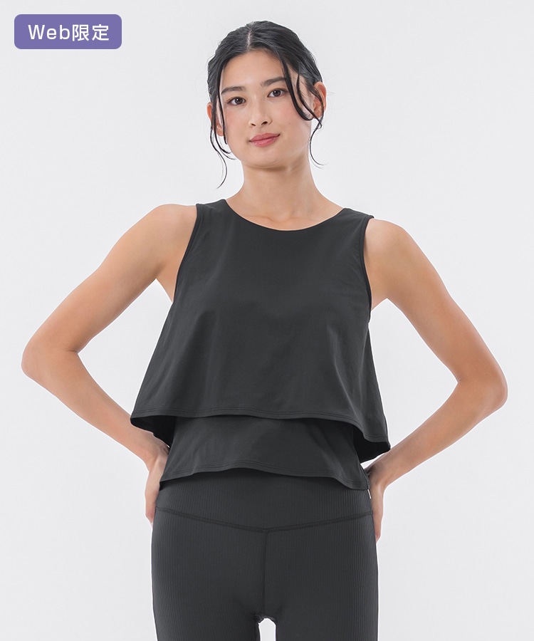 スタイルUP効果大。シンプルでありながらレイヤードデザインが効いたショート丈のタンクトップが全色リニューアルして再登場!