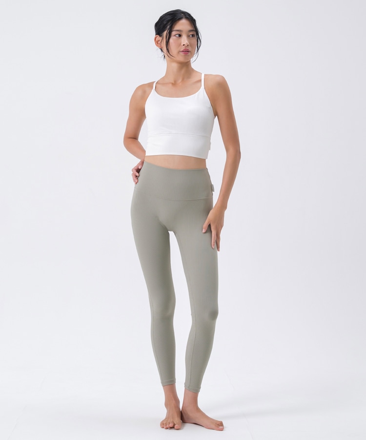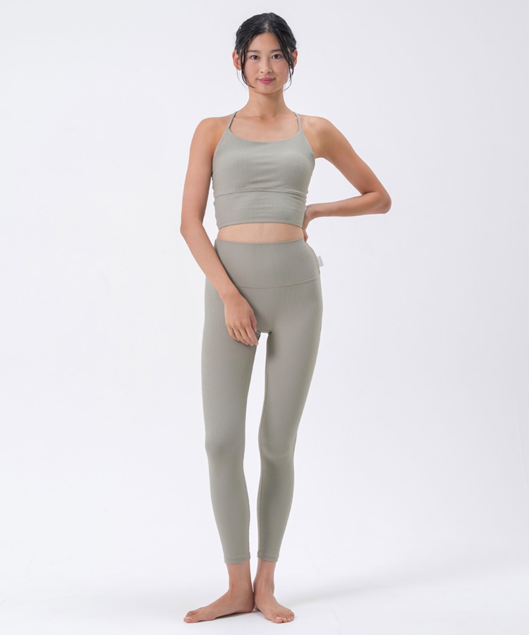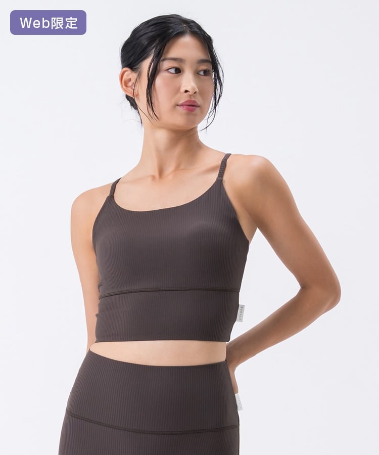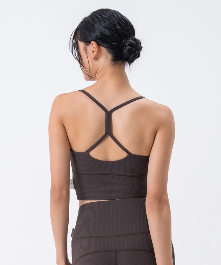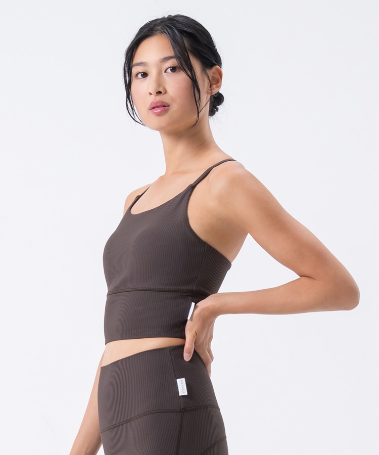 高い伸縮性と形状維持性を持ち、身体の動きをサポートしてくれるライクラ®を贅沢に23%使用したリブ素材のブラトップ。