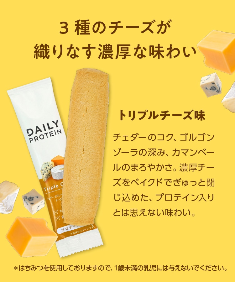 粉末状大豆たんぱく(国内製造)、大豆加工食品(植物油脂、豆乳クリーム、豆乳、大豆粉、食塩)、マルトース、鶏卵、難消化性デキストリン、還元麦芽糖水飴、チェダーチーズパウダー、カマンベールチーズパウダー、ゴルゴンゾーラチーズパウダー、馬鈴しょでん粉、砂糖、蜂蜜/乳化剤、(一部に乳成分・卵・大豆を含む)