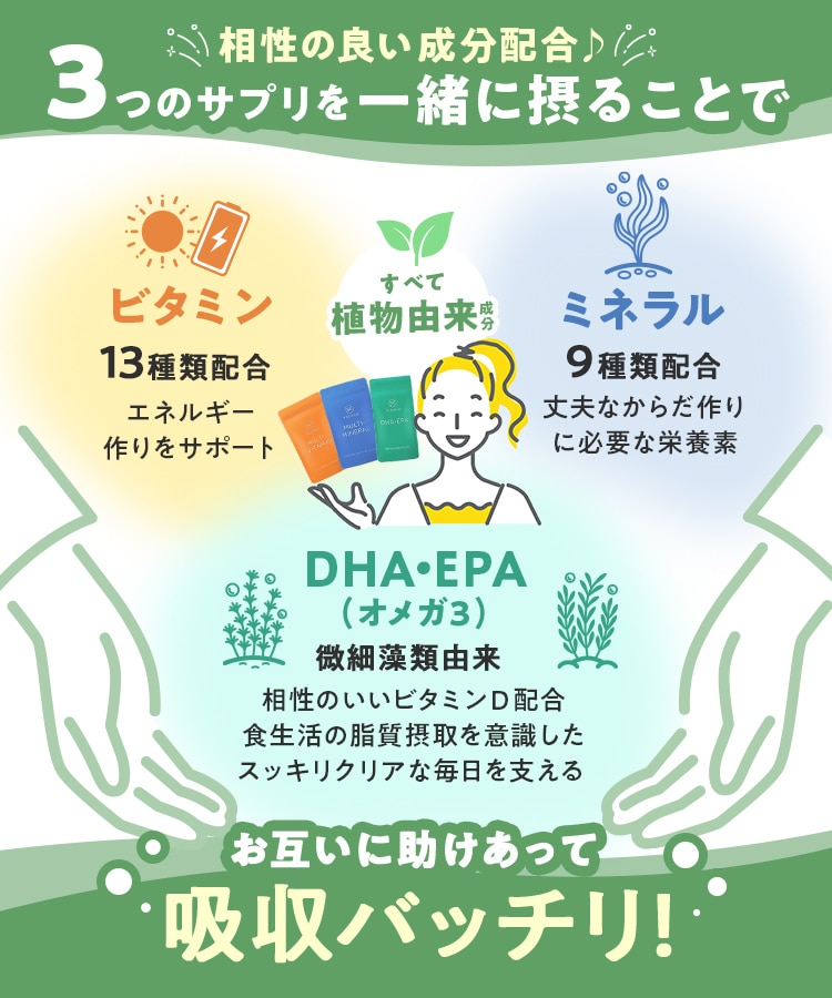 キヌアスプラウト粉末(オーストリア製造)、デキストリン、アセロラ果汁、酵母粉末、納豆菌滅菌粉末、コエンザイムQ10、黒胡椒エキス末、ヒハツ抽出物、マッシュルーム粉末/HPMC、ステアリン酸カルシウム、微粒二酸化ケイ素