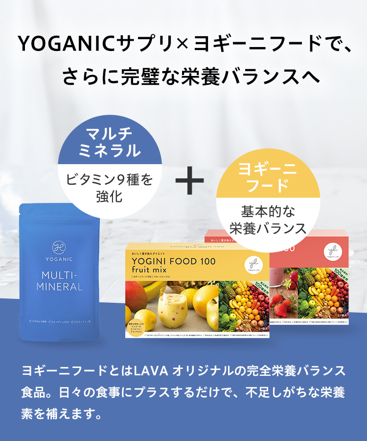 ドロマイト(国内製造)、酵母粉末、フラクトオリゴ糖、コエンザイムQ10、フルボ酸ミネラル、アカシア食物繊維、水溶性ケイ素/HPMC、ステアリン酸カルシウム、微粒二酸化ケイ素