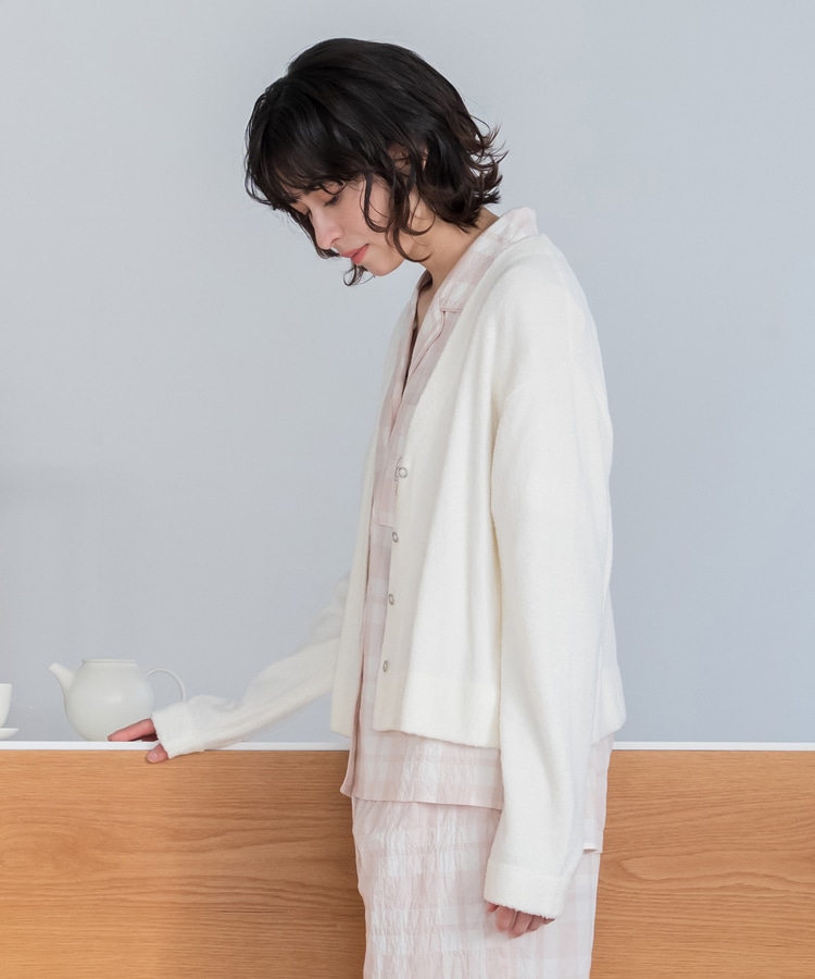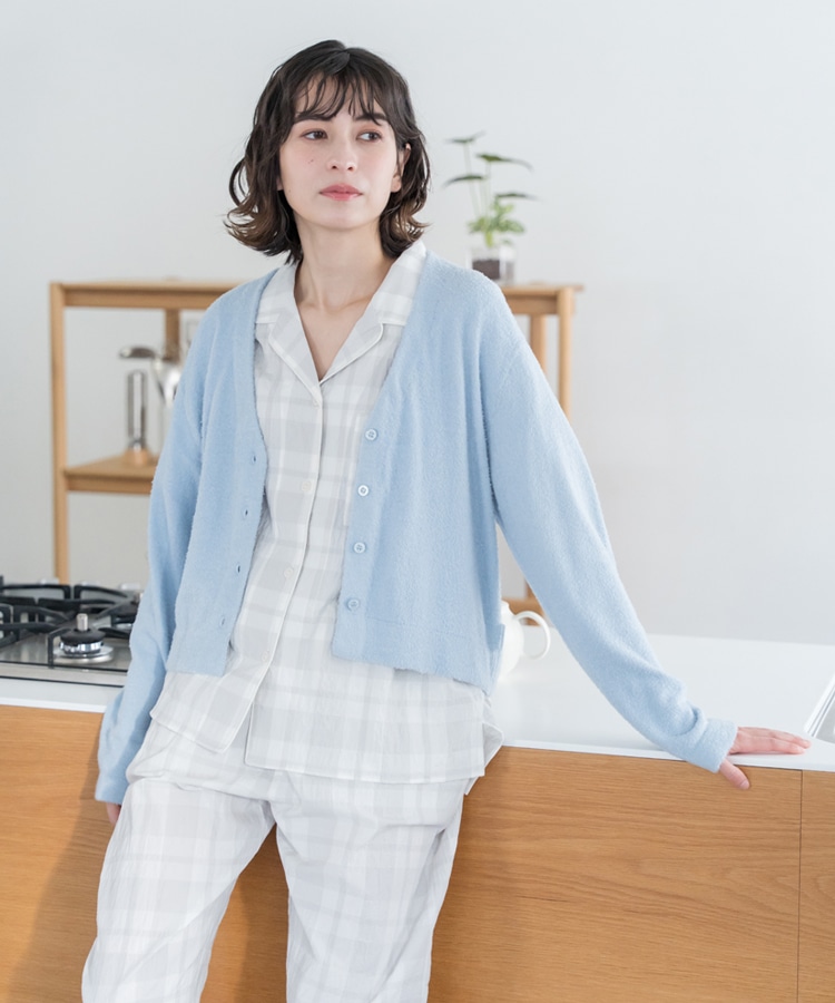 ふわふわの肌触りなのに触ると少しひんやり感じるカーディガン。