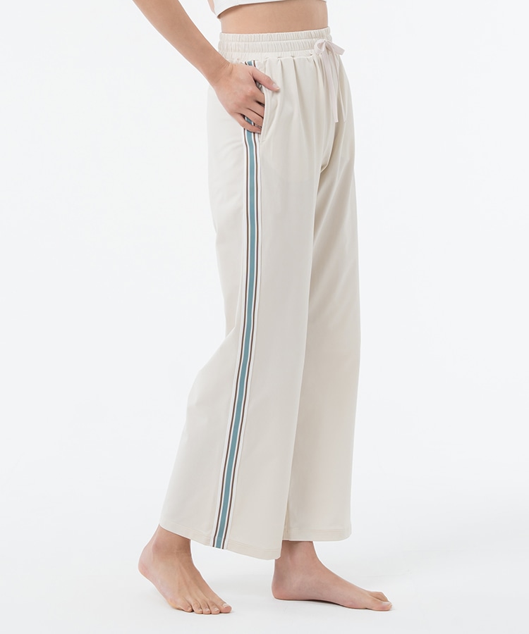 サイドラインがスポーティーな印象で、ウエストは総ゴム仕様なので、履き心地も楽ちん。