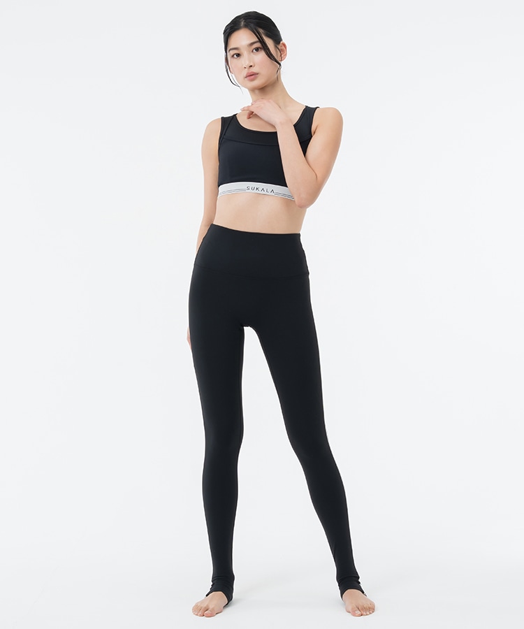 サイドラインのSUKALAロゴでスポーティーに。スタイルアップ効果大のハイウエストトレンカレギンス