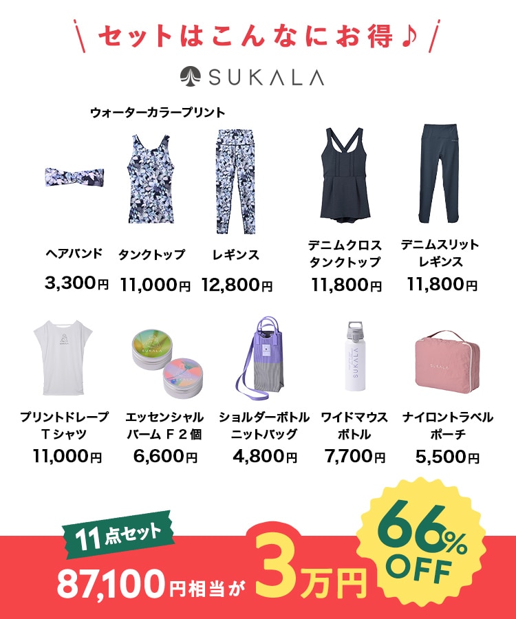 福袋でしか買えない!限定プリントの新作ウェア入りSUKALA11点セット!